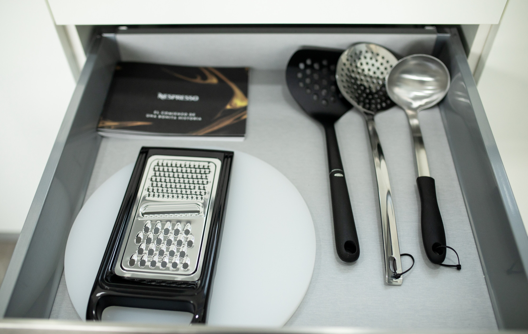 Junto a la cocina está el cuarto de lavado, con lavadora, secadora, tabla de planchar y planta, donde también se guardan los artículos y los productos para la limpieza.