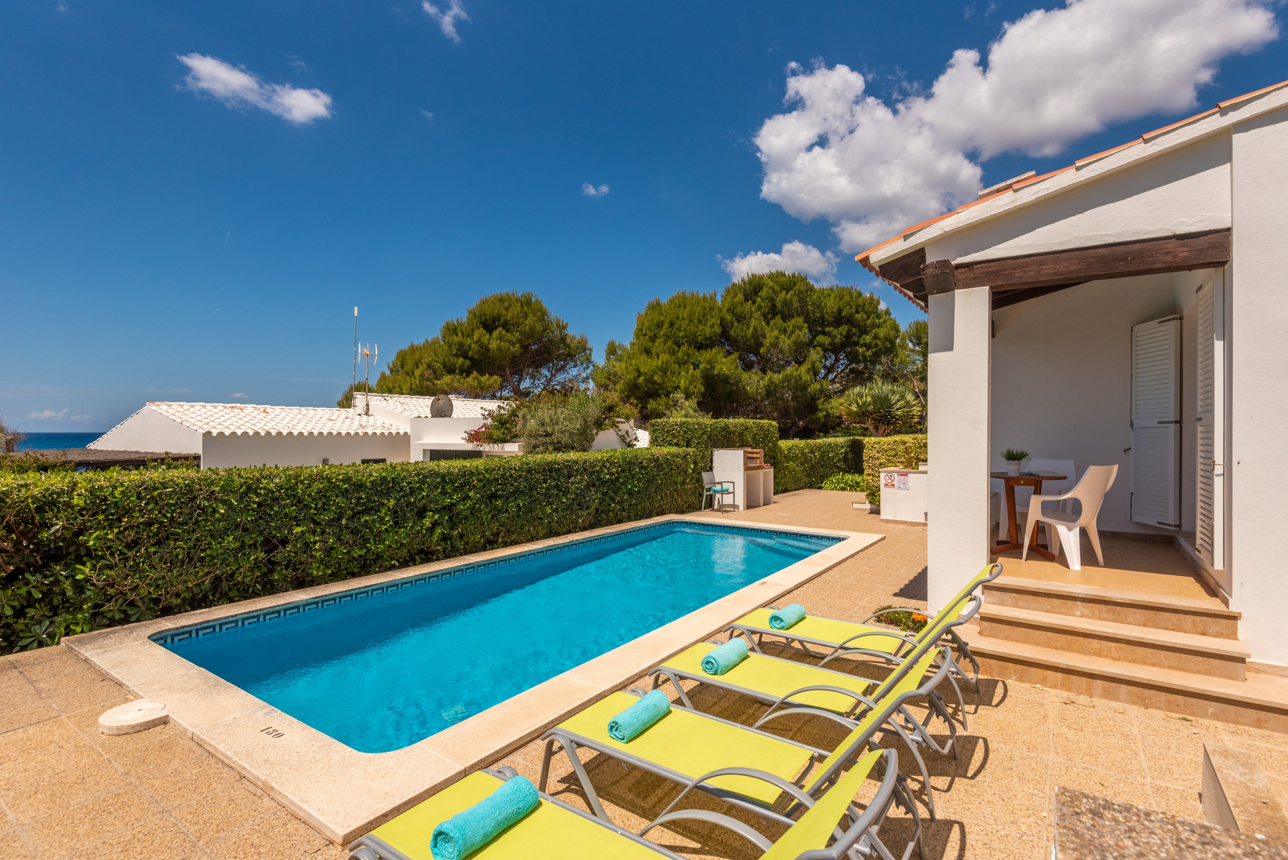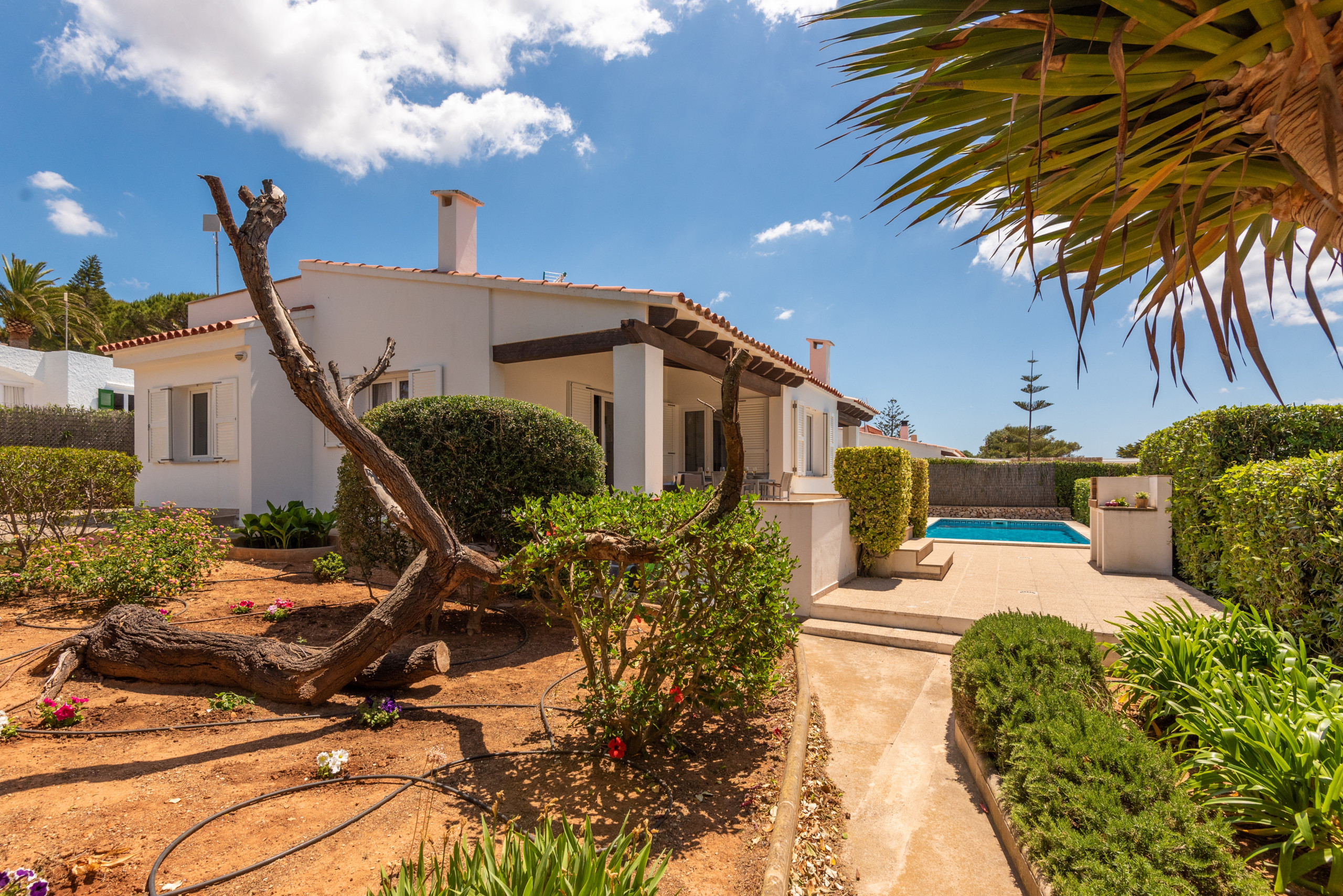 Bonita villa situada en la tranquila urbanización de Binisafuller, en la costa sur de Menorca, en el municipio de Sant Lluis. A tan solo cinco minutos de la Cala Binisafuller y de gran variedad de pequeños bares y restaurantes con vistas al mar donde sirven deliciosos platos.