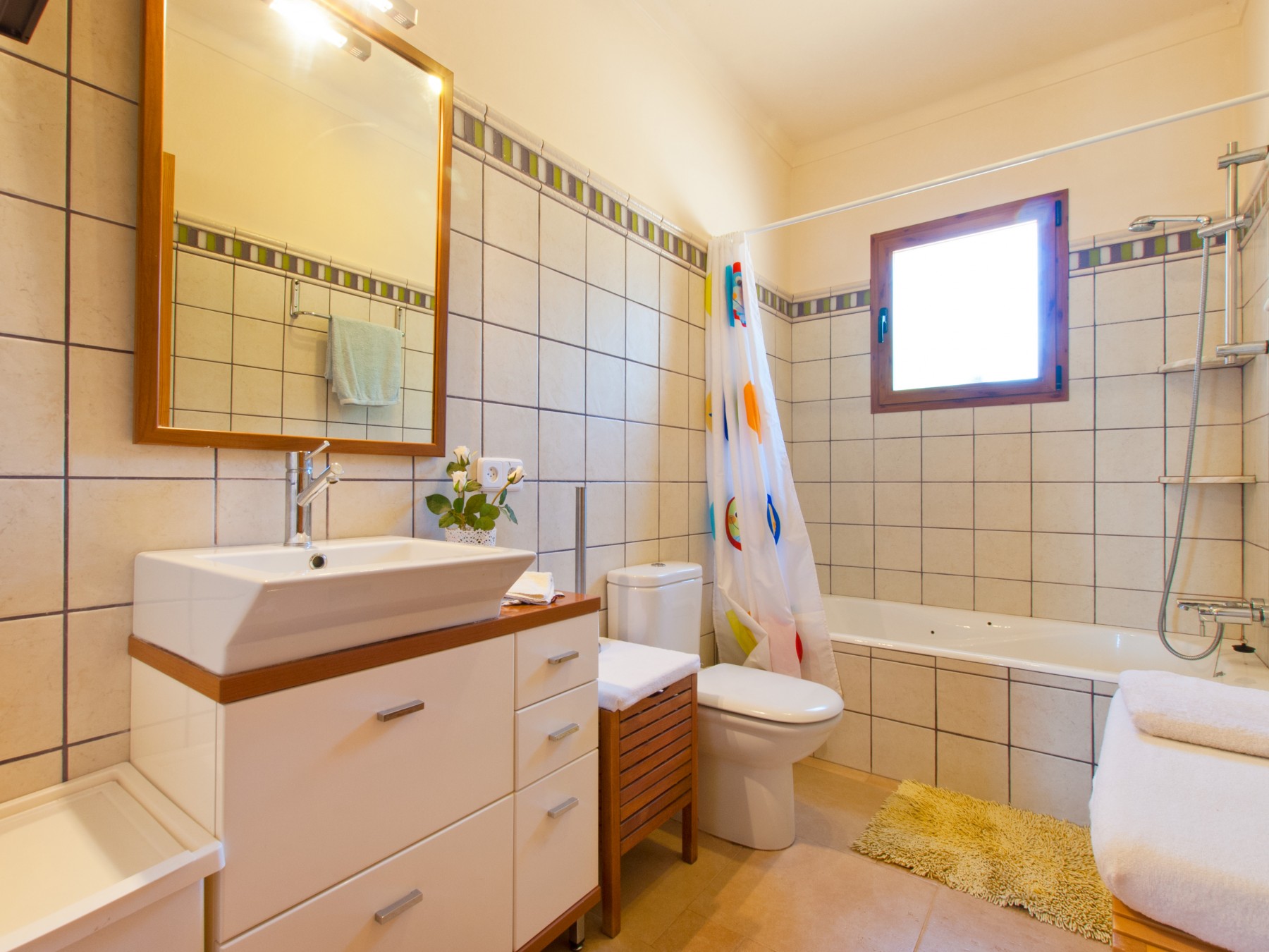 La villa cuenta con 2 baños, uno en suite y un baño familiar.
