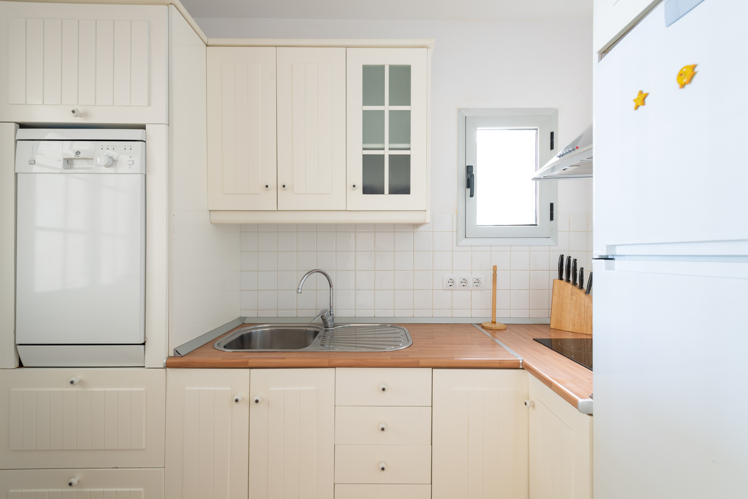 This apartment is in a great location - supermarket, car park, restaurants and the beach are all right by the apartment. Communication with the host was quick and easy. The apartment itself is OK. The terrace is sunny, sheltered from the wind and has a lovely view of the beach and the sea, and it’s quiet at night. The kitchen is a bit too small to properly cook in, with a few impractical details (eg the dishwasher doesn’t open as the microwave is in the way). Otherwise everything is as advertised/shown in photos!