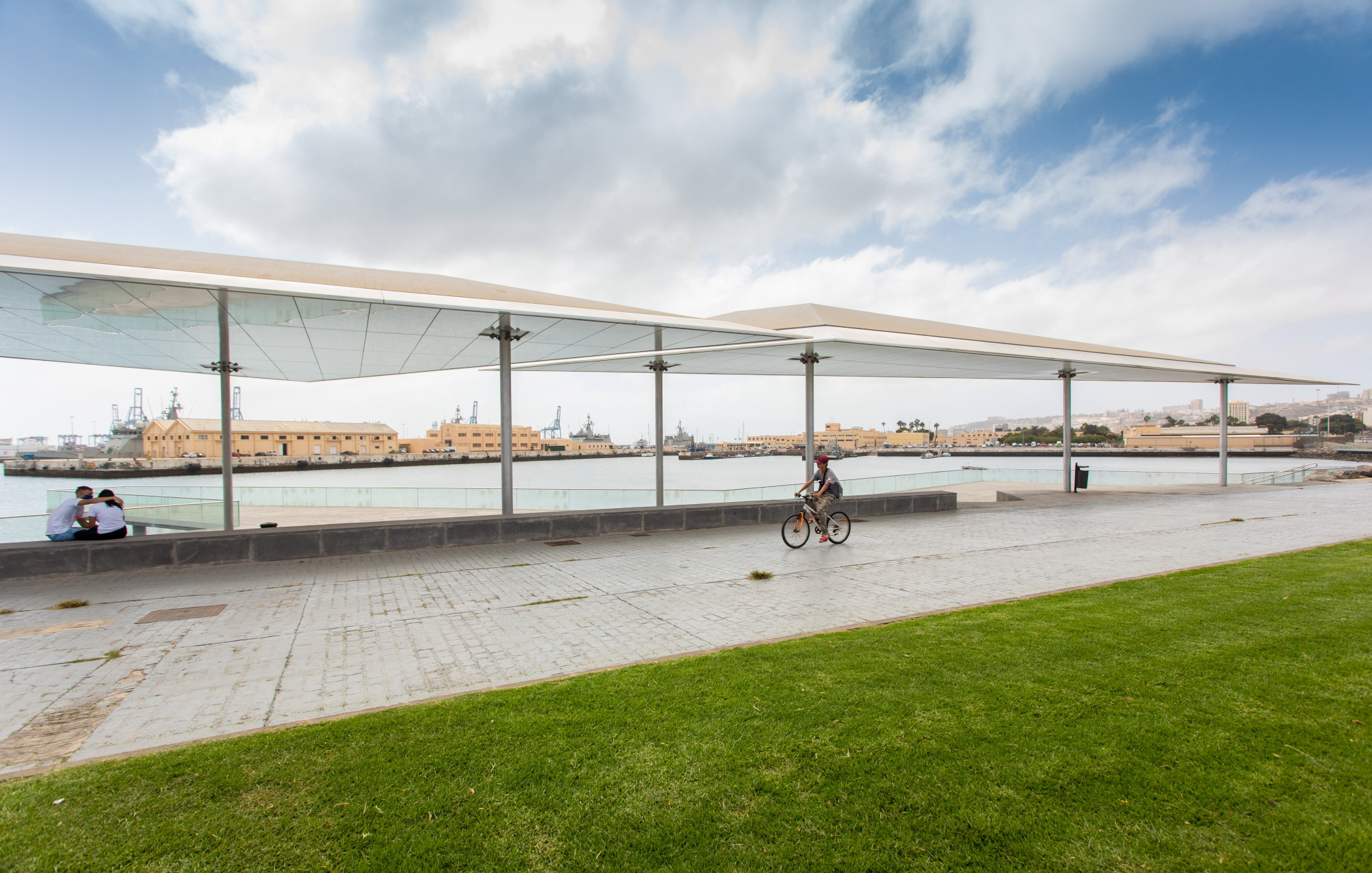 Junto al Parque Marítimo se encuentra La marquesina, un equipamiento que recuerda la primera estación de pasajeros que tuvo el Puerto de La luz a comienzos del S.XX.