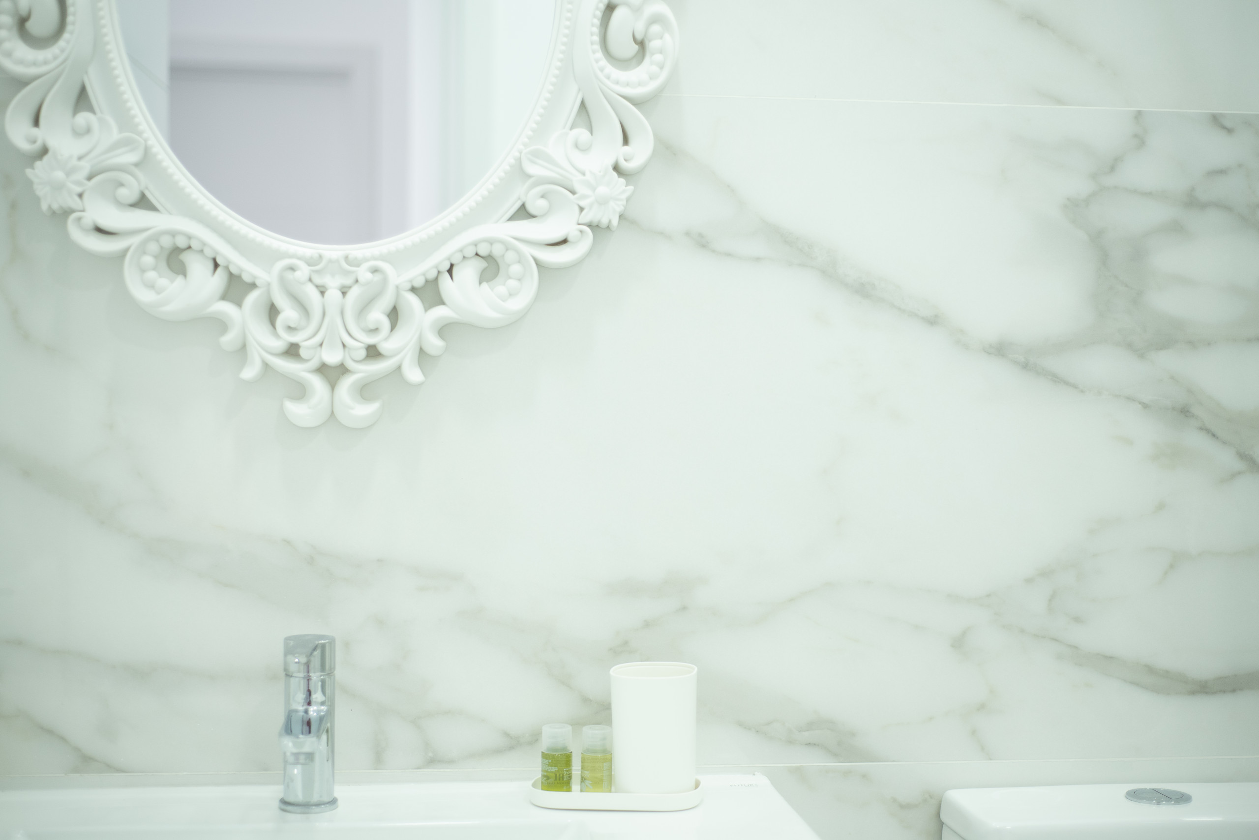 El lujoso baño mejora su estadía con sus azulejos de mármol y su espaciosa ducha, agregando un toque de opulencia a su rutina diaria.