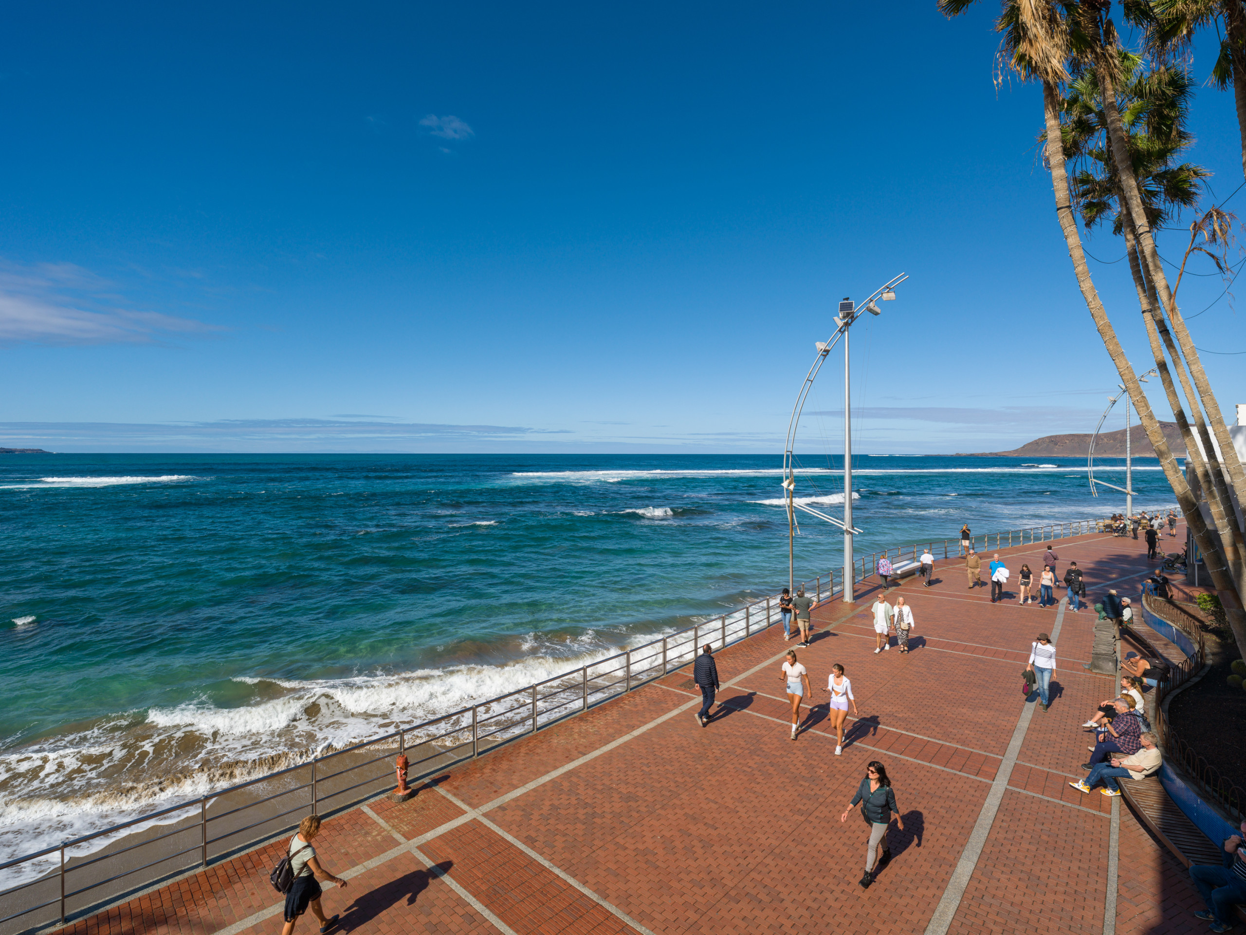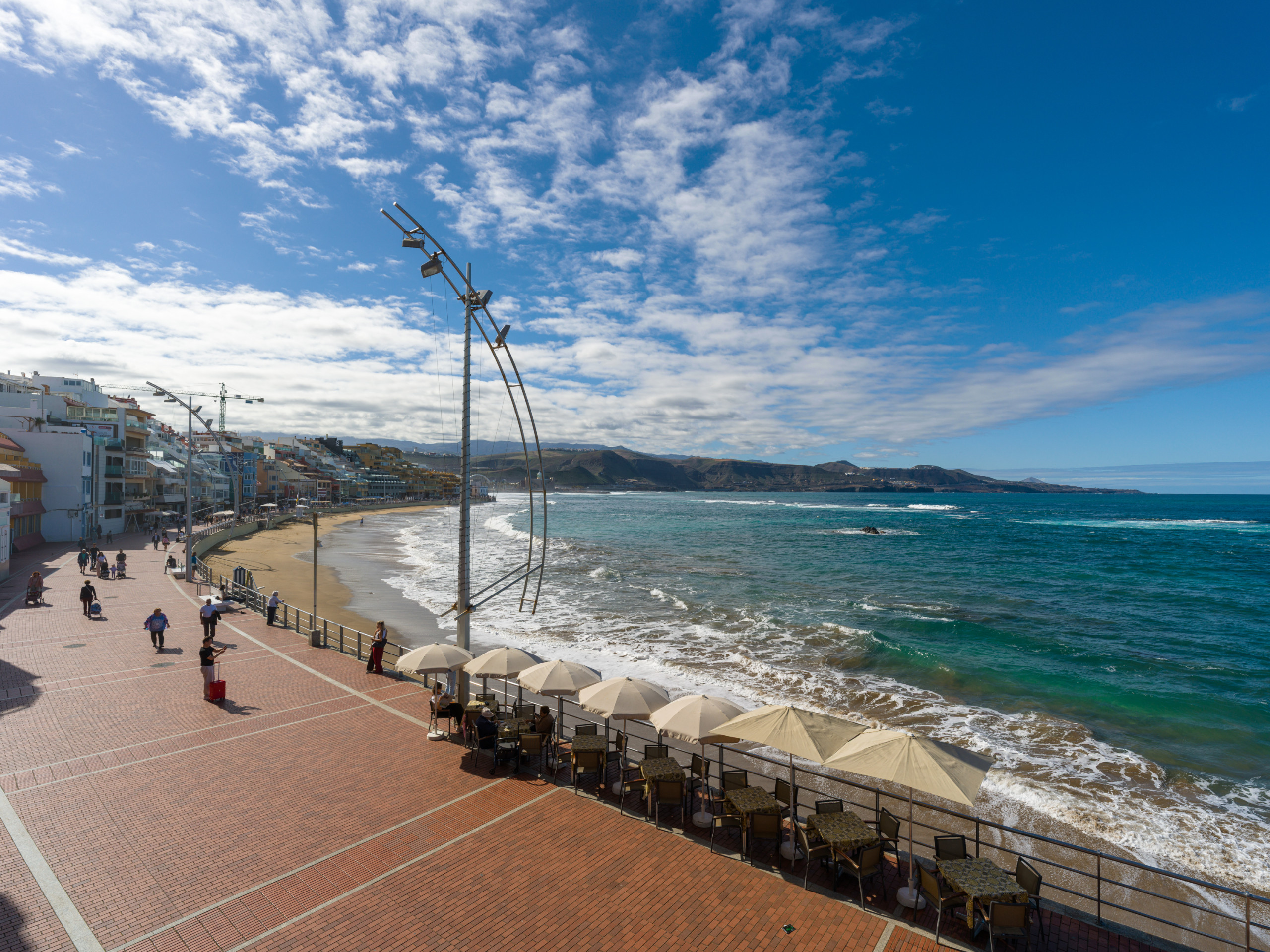 Le recomendamos el largo paseo que serpentea continuo a la arena, sorteando cafés y heladerías. Al inicio del paseo encontrará las terrazas de La Puntilla y los restaurantes de pescado fresco. En el otro extremo de la playa, el ambiente surfero alrededor del Auditorio Alfredo Kraus, con más terrazas y cafés frente al mar.