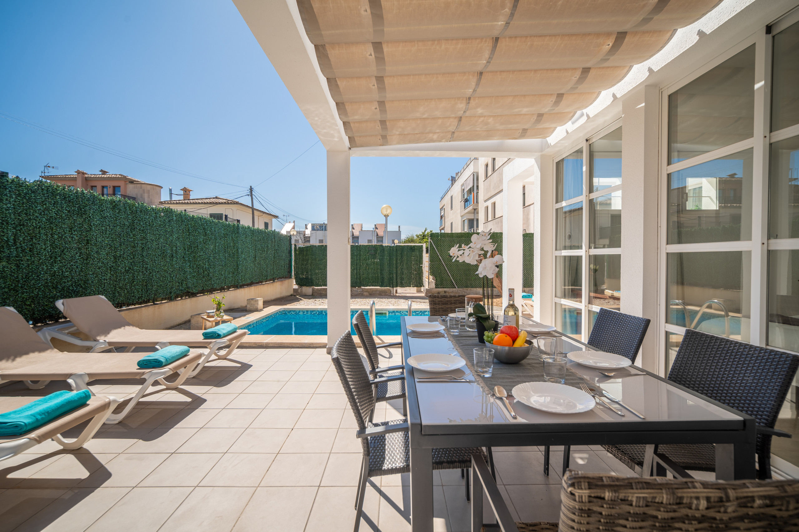 Villa Savina ofrece una experiencia de alojamiento incomparable en Can Picafort, perfecta para familias, grupos de amigos y parejas que buscan unas vacaciones memorables. Esta acogedora villa cuenta con 4 dormitorios luminosos que pueden alojar cómodamente hasta 8 personas, con una distribución flexible de 8 camas individuales.