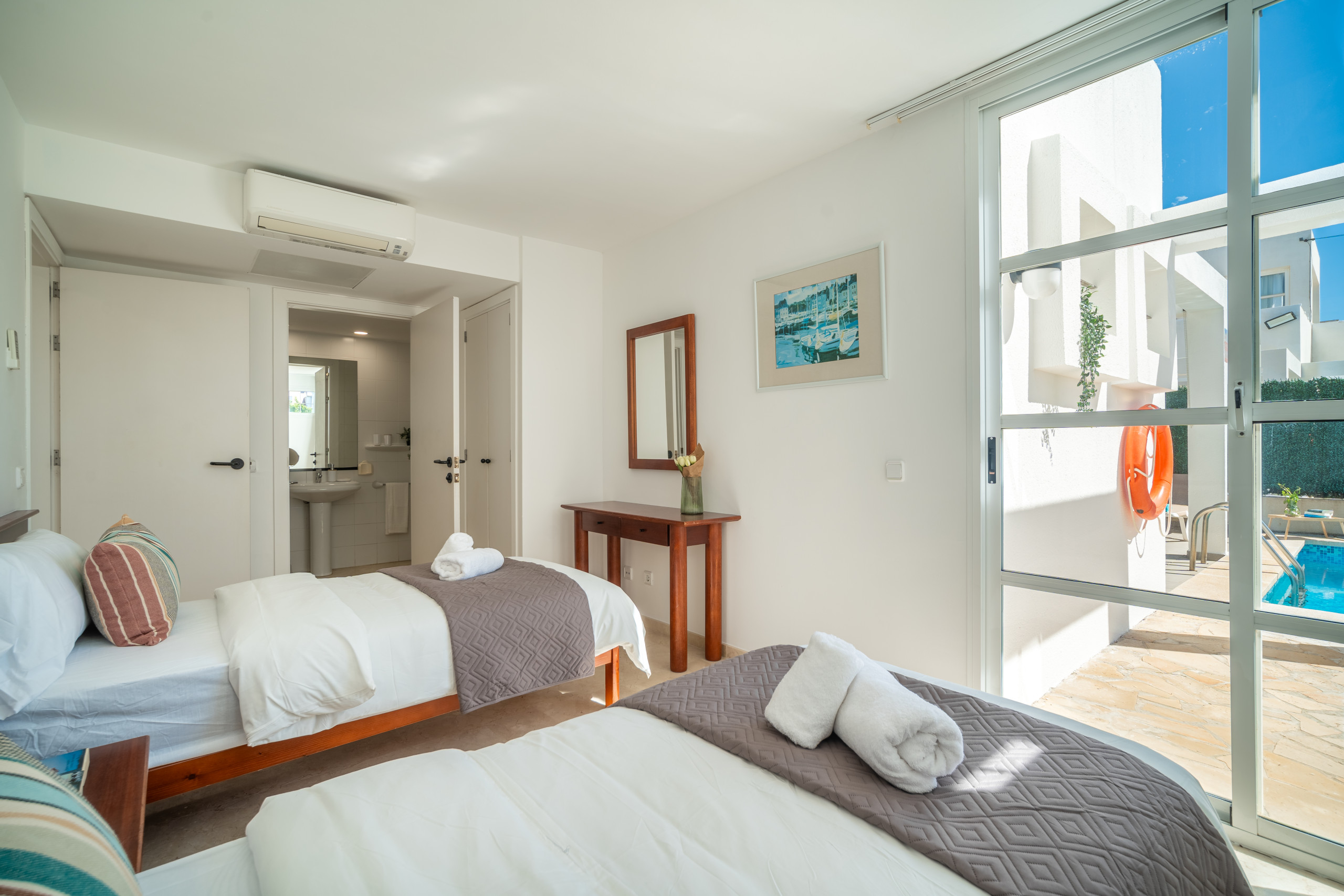 Los 4 baños completos con bañera y ducha ofrecen comodidad y privacidad para todos los huéspedes. La villa cuenta con detalles adicionales como televisión HD, armarios empotrados, plancha, alarma y conexión WiFi de alta velocidad para mantenerte conectado.