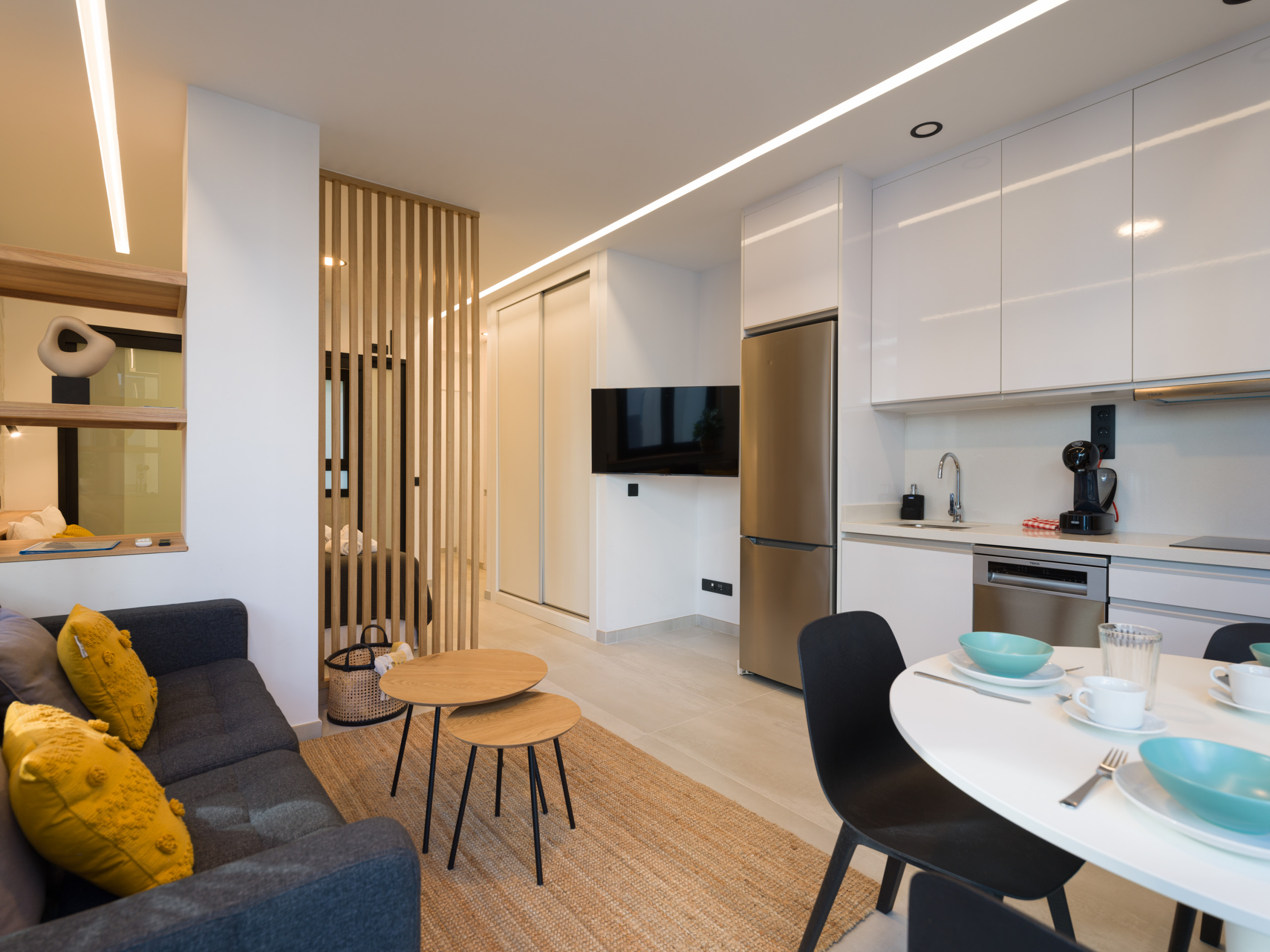 Kan till 100% rekommendera lägenheten. Var i förväg lite orolig för storleken men lägenheten var mycket smart planerad. Fönster från golv till tak gjorde den mycket luftig och därför kändes den större än 35 kvadrat. Min fru och jag stannade i 5 veckover más