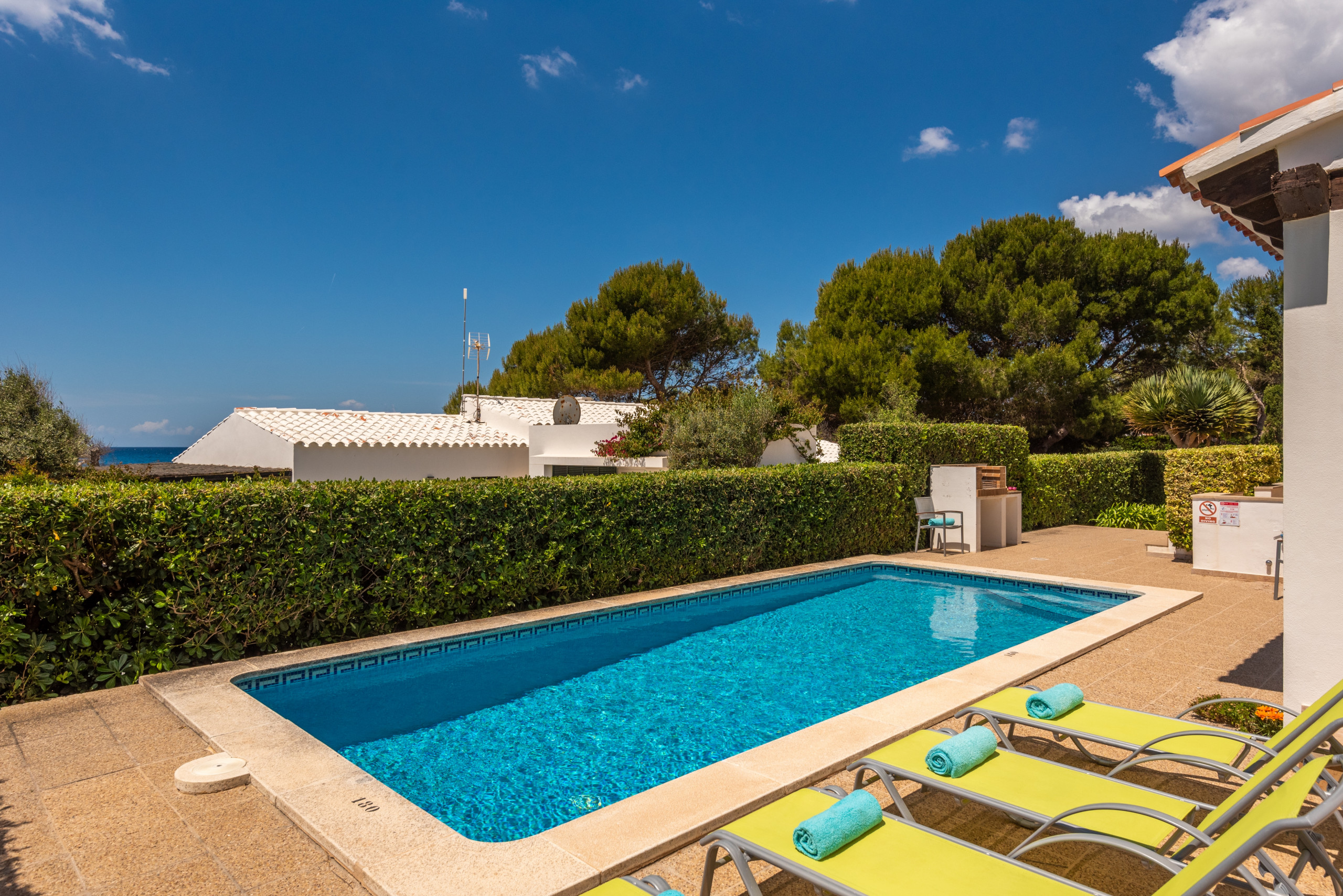 Bonita villa situada en la tranquila urbanización de Binisafuller, en la costa sur de Menorca, en el municipio de Sant Lluis. A tan solo cinco minutos de la Cala Binisafuller y de gran variedad de pequeños bares y restaurantes con vistas al mar donde sirven deliciosos platos.