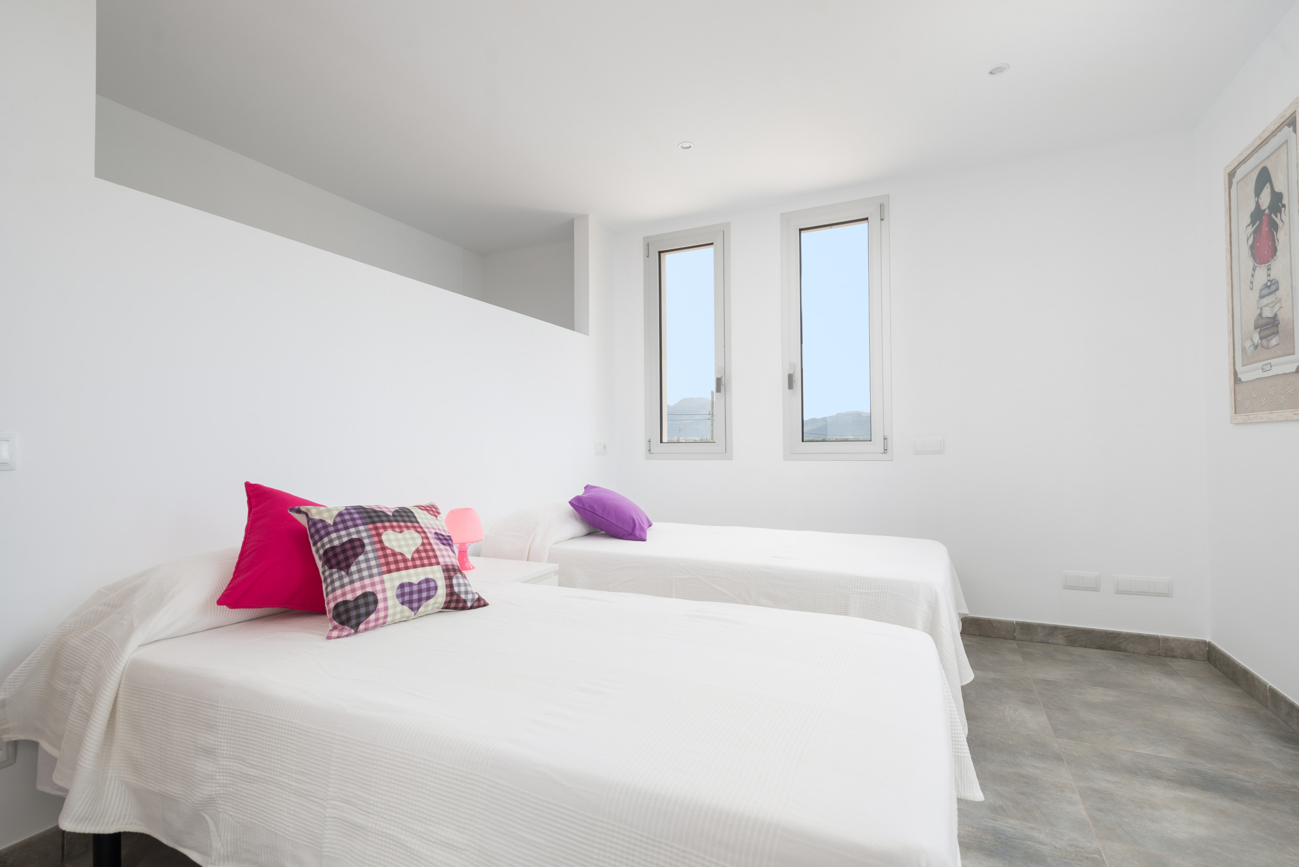A la izquierda se encuentra un amplio dormitorio con cama doble y un baño con ducha. Subiendo las escaleras nos encontramos en la primera planta que cuenta con dos dormitorios , el primero con dos camas twin y el segundo con cama doble y salida al balcón y un baño con ducha y bañera.