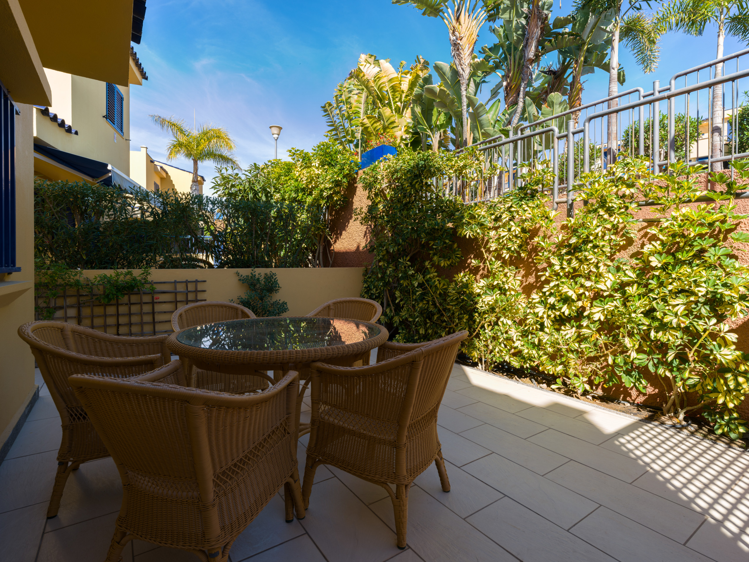 Es hat einen großen Garten mit Möbeln und Sonnenliegen, ideal zum Essen, Sonnenbaden und Entspannen. Das Grundstück ist eingezäunt und es gibt auch eine 10 m² große Terrasse auf der Rückseite. Es verfügt über alles, was Sie brauchen, um einen idealen Urlaub wie zu Hause zu verbringen, wie z.B. Bügeleisen, unbegrenzten Internetzugang (wifi), Haartrockner, Gemeinschaftspool und 2 Smart TVs. Die offene Küche ist mit dem Wohnzimmer verbunden und mit hochwertigen Geräten ausgestattet: Cerankochfeld, Kühlschrank, Mikrowelle, Backofen, Gefrierschrank, Waschmaschine, Geschirrspüler, Geschirr/Besteck, Küchenutensilien, Kaffeemaschine, Toaster, Wasserkocher und Saftpresse.