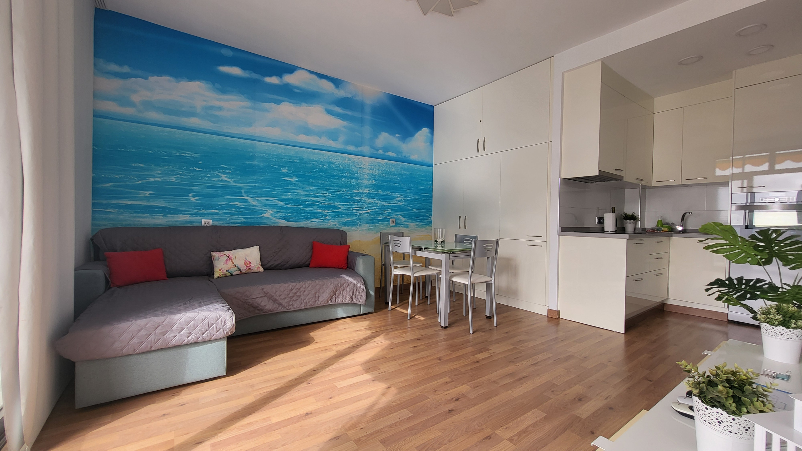 Es befindet sich im vierten Stock eines Gebäudes mit Aufzug, ist 70 m2 komfortabel und komplett ausgestattet. Es befindet sich direkt am Strand und bietet einen herrlichen Blick auf das Meer und die Berge sowie eine tolle Terrasse mit Meerblick.